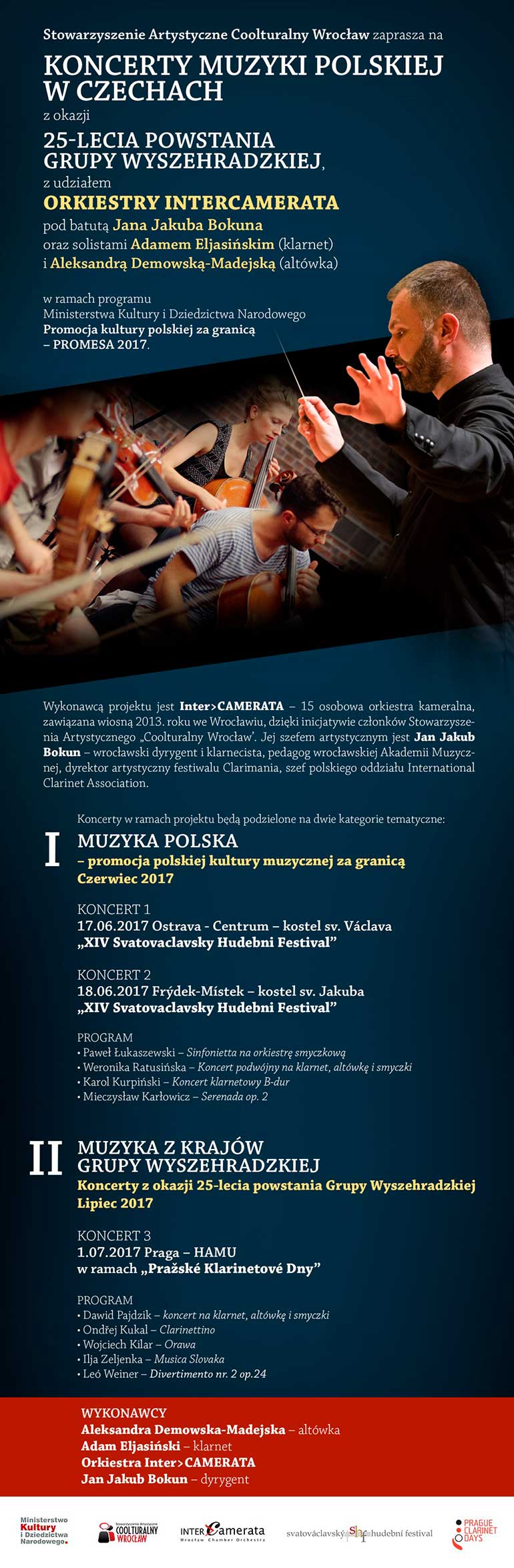 Koncerty muzyki polskiej w Czechach z okazji 25 lecia powstania Grupy Wyszehradzkiej, z udziałem Orkiestry InterCAMERATA pod batutą Jana Jakuba Bokuna oraz solistami Adamem Eljasińskim (klarnet) i Aleksandrą Demowską-Madejską